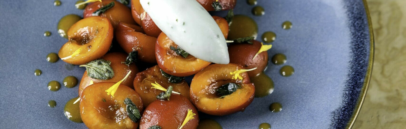 Couper les abricots, saupoudrer de miel et de romarin et cuire à 100°C environ 15/30 minutes selon les abricots. Dresser avec les abricots et une jolie quenelle de sorbet, puis ajouter les pignons torréfiés.