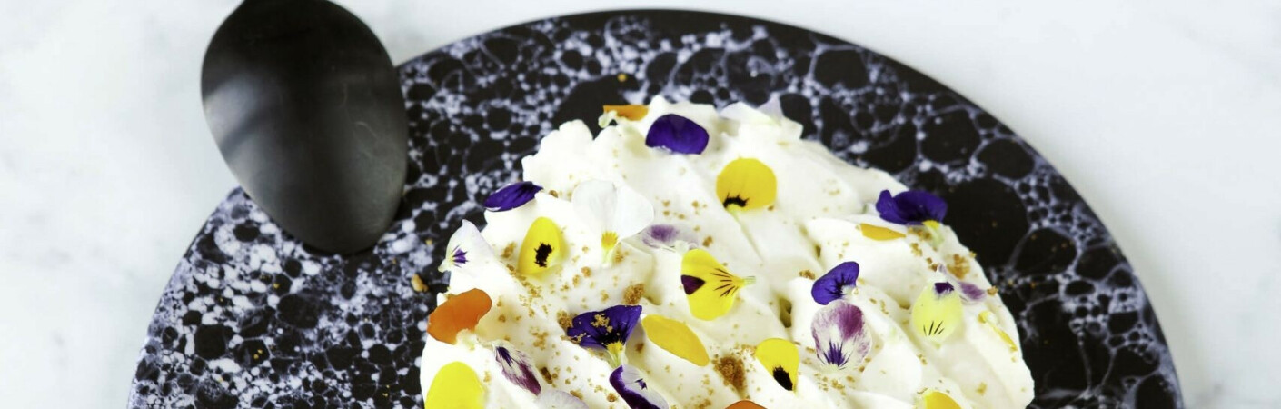 Mousse au fromage blanc citronnelle croustillants spéculos et coulis d’abricot